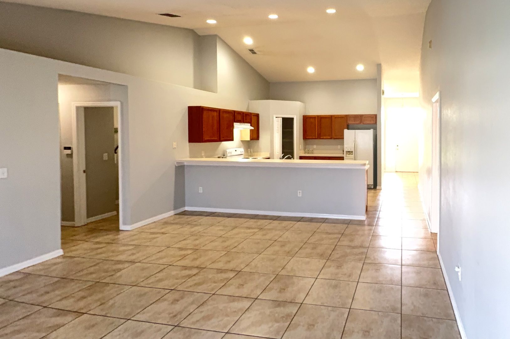 Step into this inviting and bright 3-bedroom, 2-bath home featuring a thoughtful layout and plenty of space for comfortable living. This home offers a 2-car garage, tile flooring throughout, and vaulted ceilings that add to the open, airy feel. The spacious kitchen boasts ample counter space and storage, perfectly positioned to overlook the family room—ideal for entertaining or keeping an eye on the action while cooking. Enjoy the elegance of a formal living room and formal dining room, both filled with natural light and perfect for gatherings. The large master suite features a private ensuite bathroom complete with dual sinks, a soaking tub, and a separate shower—a true retreat. Step outside to a rear patio and partially fenced yard, offering a great space for outdoor relaxation.